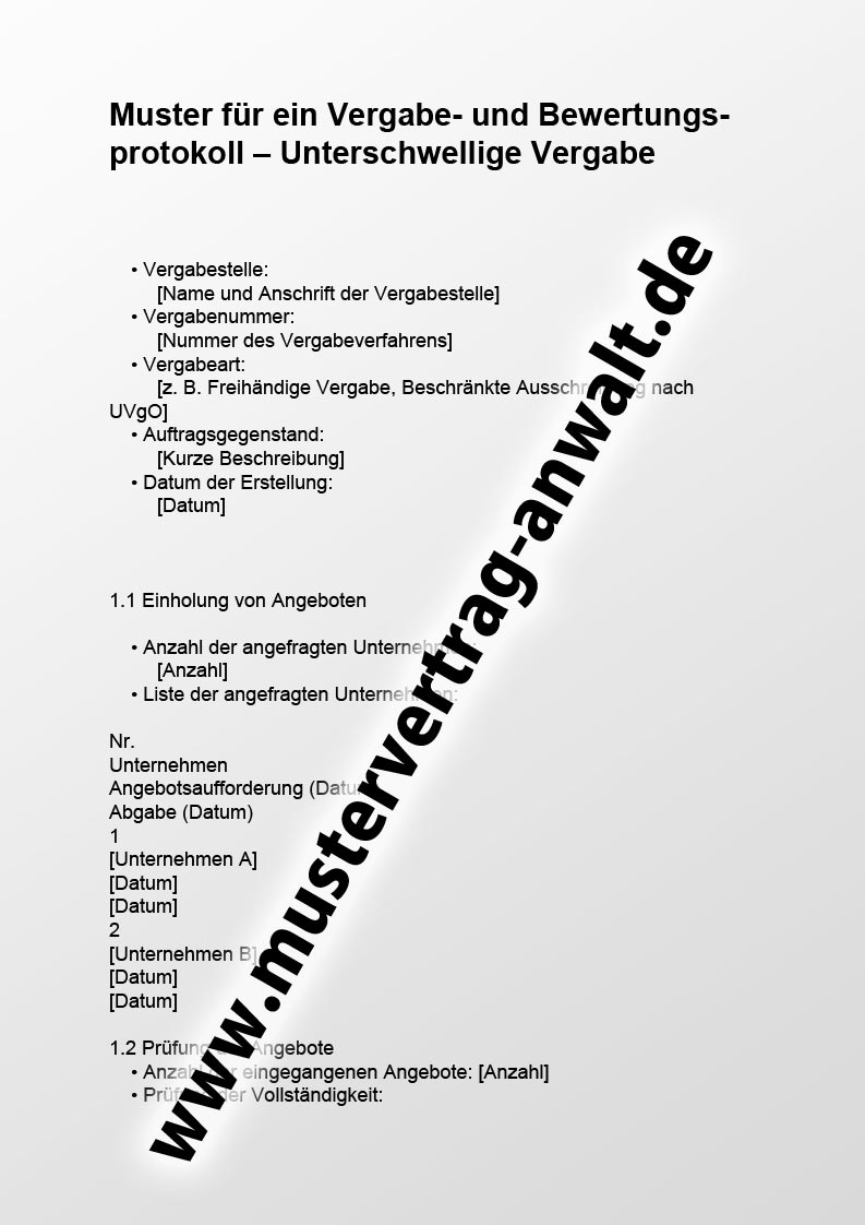 Sie sind hier: Startseite1 / Muster für ein Vergabe- und Bewertungsprotokoll – Unterschwellige Vergabe2 / Muster-für-ein-Vergabe–und-Bewertungsprotokoll-–-Unterschwellige...