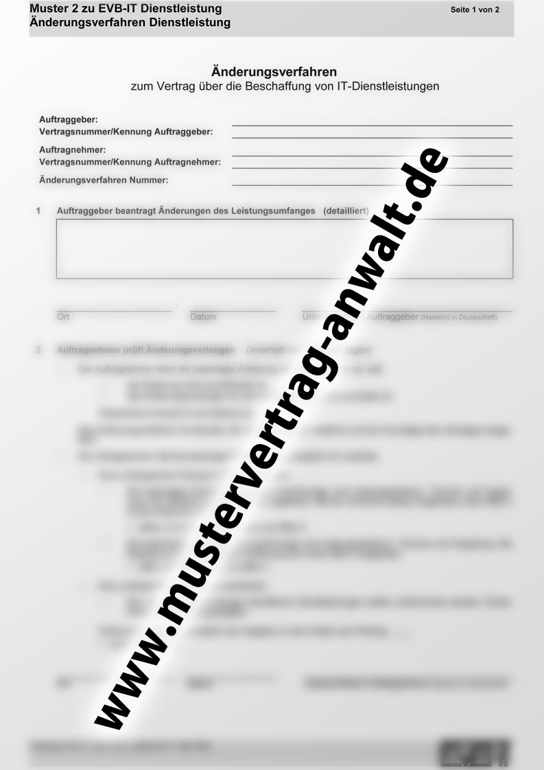 Sie sind hier: Startseite1 / EVB IT Dienstleistungen Muster 2 Änderungsverfahren Diensleistung2 / evb_it_dienstleistungen_muster2_aenderungsverfahren_diensleistung_word...