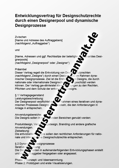 Entwicklungsvertrag für Designschutzrechte durch einen Designerpool und ...