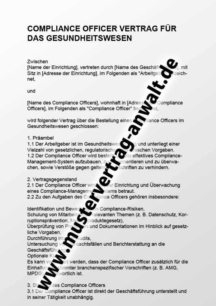 Compliance Officer Vertrag für das Gesundheitswesen Menge