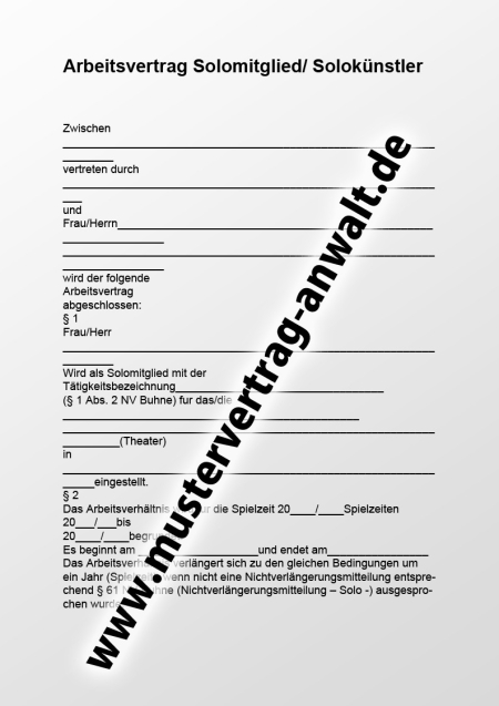 Arbeitsvertrag Solomitglied/ Solokünstler