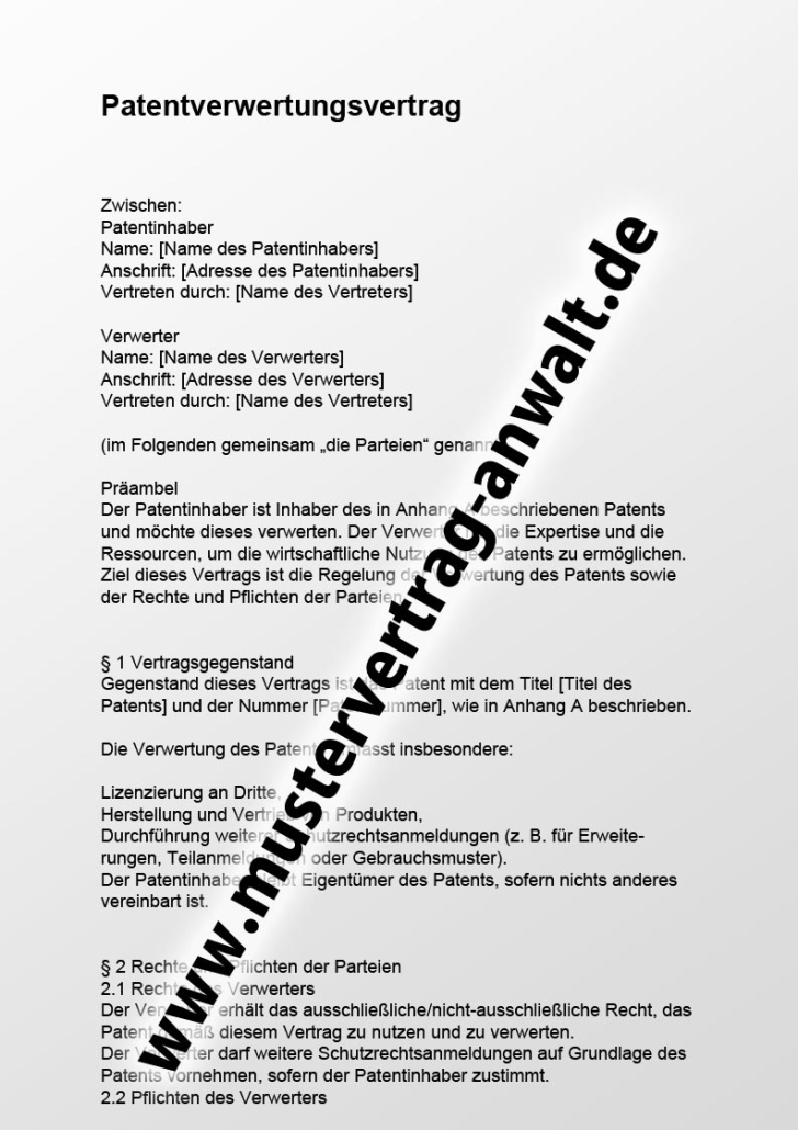 Lizenzvertrag zur exklusiven Nutzung eines Patentes