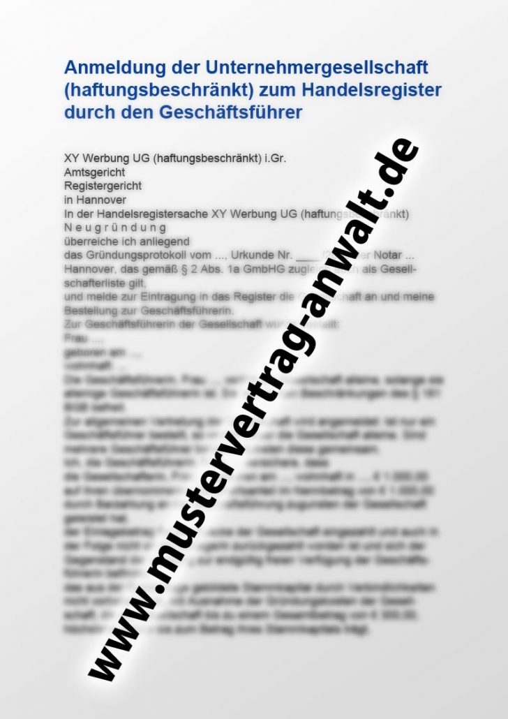 Anmeldung der Unternehmergesellschaft (haftungsbeschränkt) zum Handelsregister ...